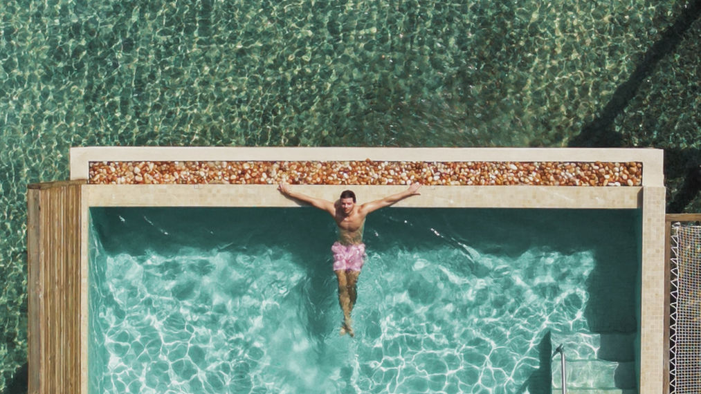 Spectacular overwater villas floating over a wonderful crystal lagoon and characterized by refined and contemporary interior design: 170 sqm made with local materials and perfectly in harmony with the nature of the island. Overwater villas are suspended on the east side of the island and have a large terrace with swimming pool, equipped with any modern comfort, as well as a private butler. An earthly and marine paradise, where every detail is designed to satisfy the most demanding expectations.